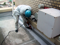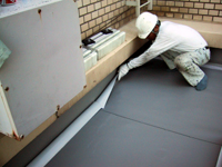 立上りをふくれ、シワなどがない様にきれいに絶縁シートを張っていきます。